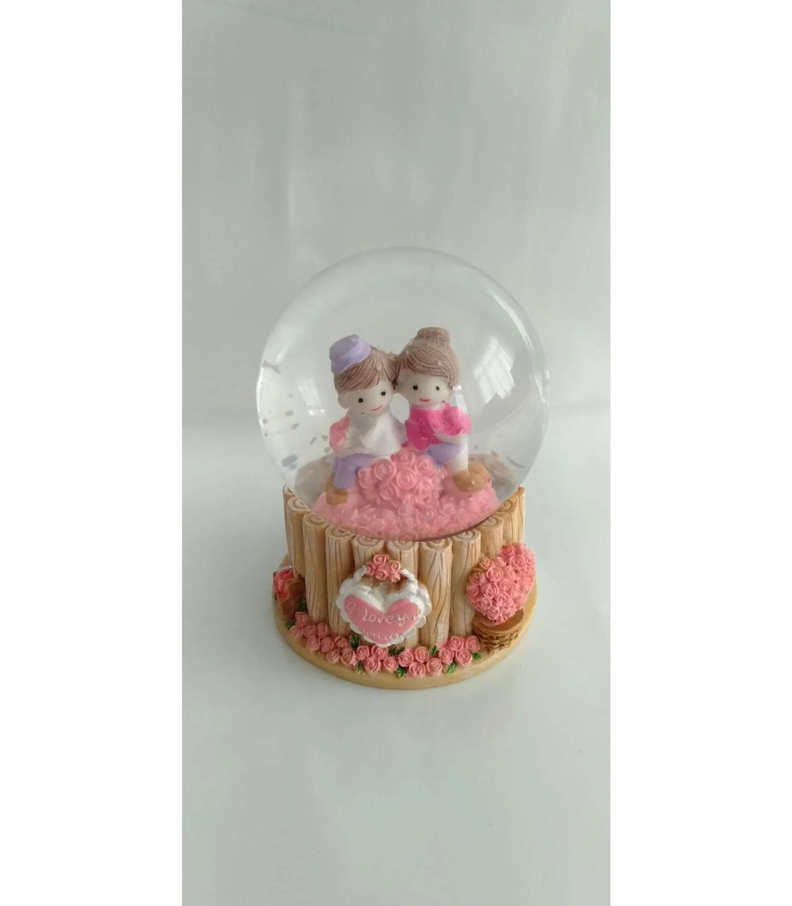 Sevimli Aşıklar Işıklı Cam Küre Düğmesi Açıldığında Otamatik Renk Değiştirmektedir